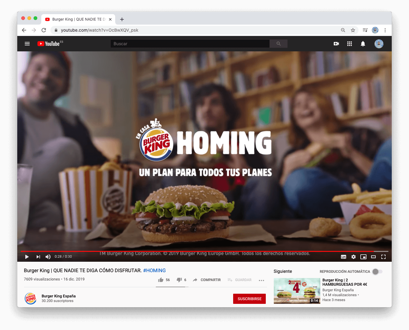 ‘Homing’ para Burguer King